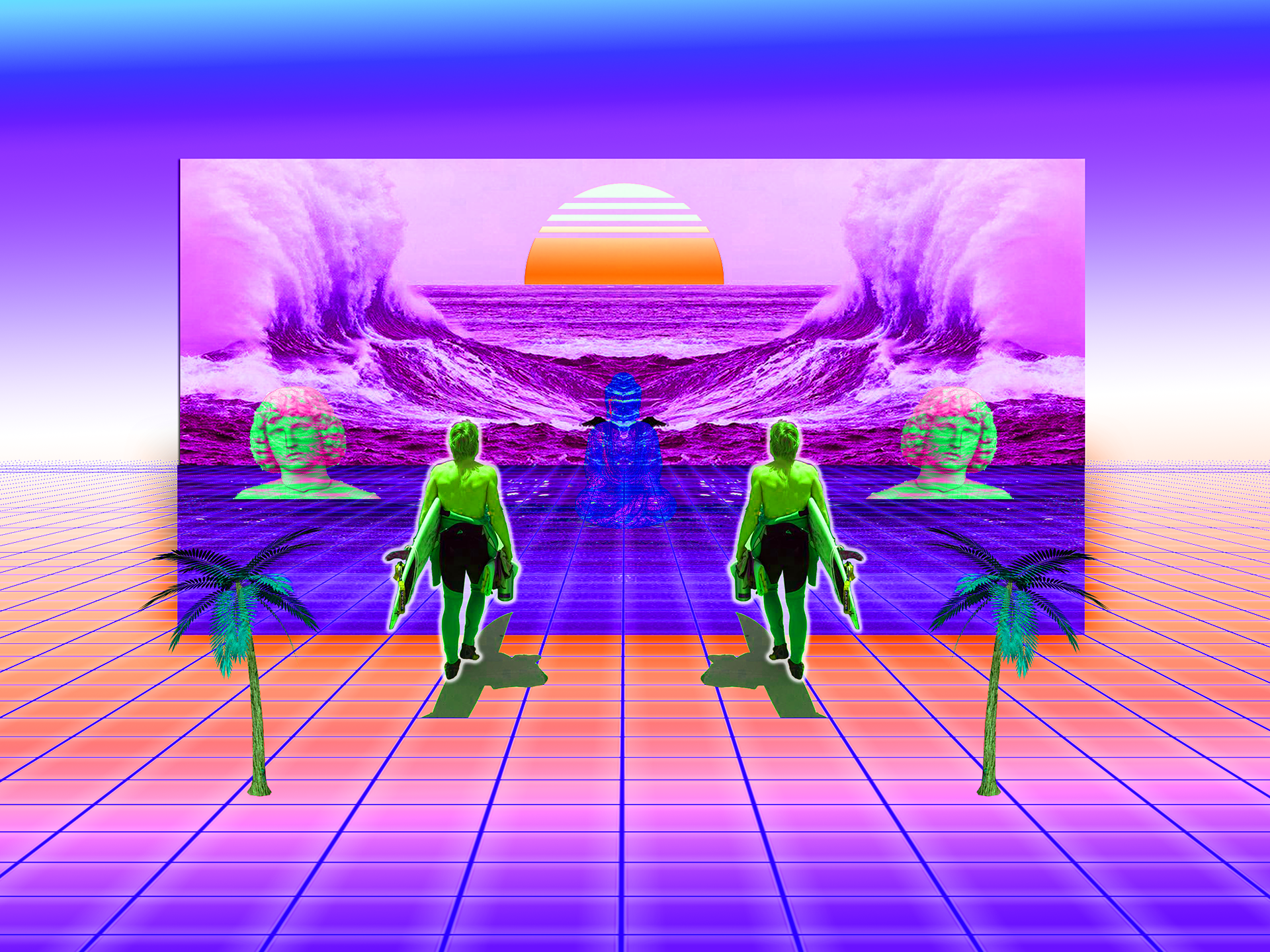 Oniichan was a project that spun out of my dive into using Adobe Creative Suite to experiment With A vaporwave Focused Aesthetic. The work eventually evolved into what I decided to Start callING Hyperwave or in Some Cases PUREWAVE (everything is waves afterall). This project also has A music component that can be found on Soundcloud and the artstyle that I found while working on these pieces was later applied to the Sine Wave Surfer's Aesthetic that is seen Reflected in our posters, Album Art, and Other promotional materials.