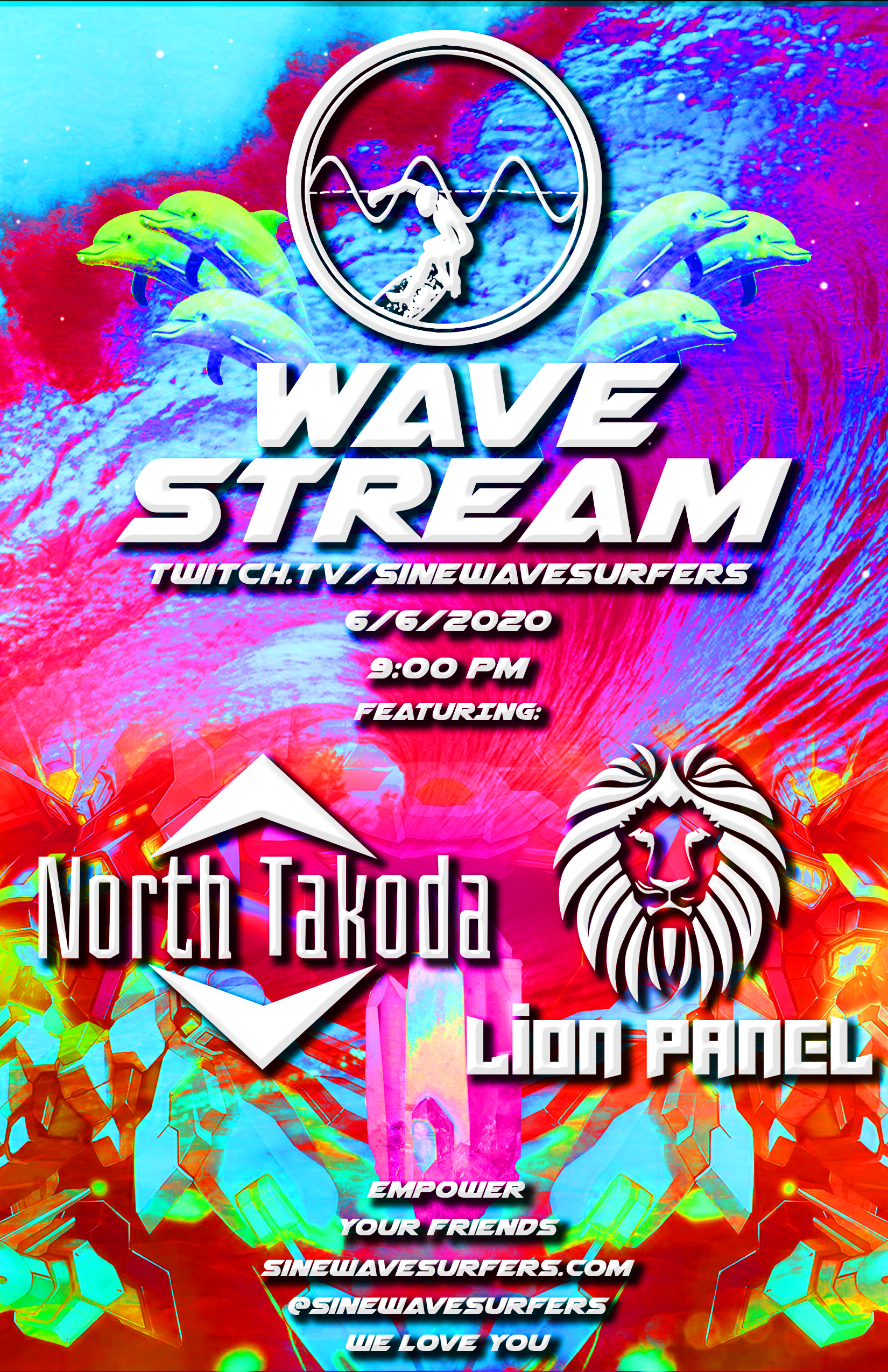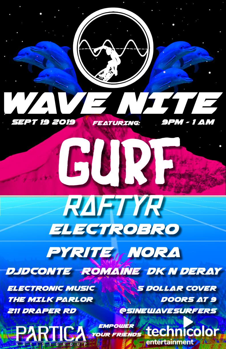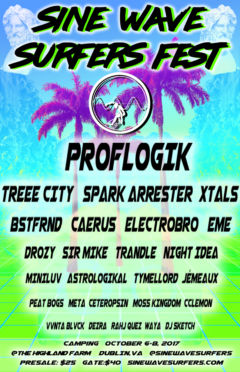 TheSe posters Began out of necessity when I realized that we needed artwork for our music events. So I began experimenting with Photoshop and after Creating the ONIICHAN project, the art style from that seemed to migrate over to the Sine wave surfers world. Below is a collection of Posters that were made to advertise events and workshops that we put on.